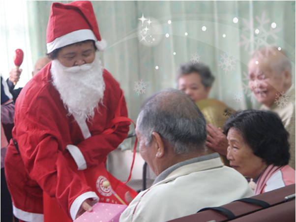 有了上次經驗長輩服務的時候更得心應手,更有服務的熱忱,像認識許久老朋友再次重逢,大家相見歡喜,聚在一起有聊不完的話題,我們的到來給伊甸老人帶來歡樂,除了唱聖誕歌,永和長輩扮聖誕老公公分送禮物給長輩,老人服務老人,相處和諧,老人志工又可以從服務中獲得成就感。
